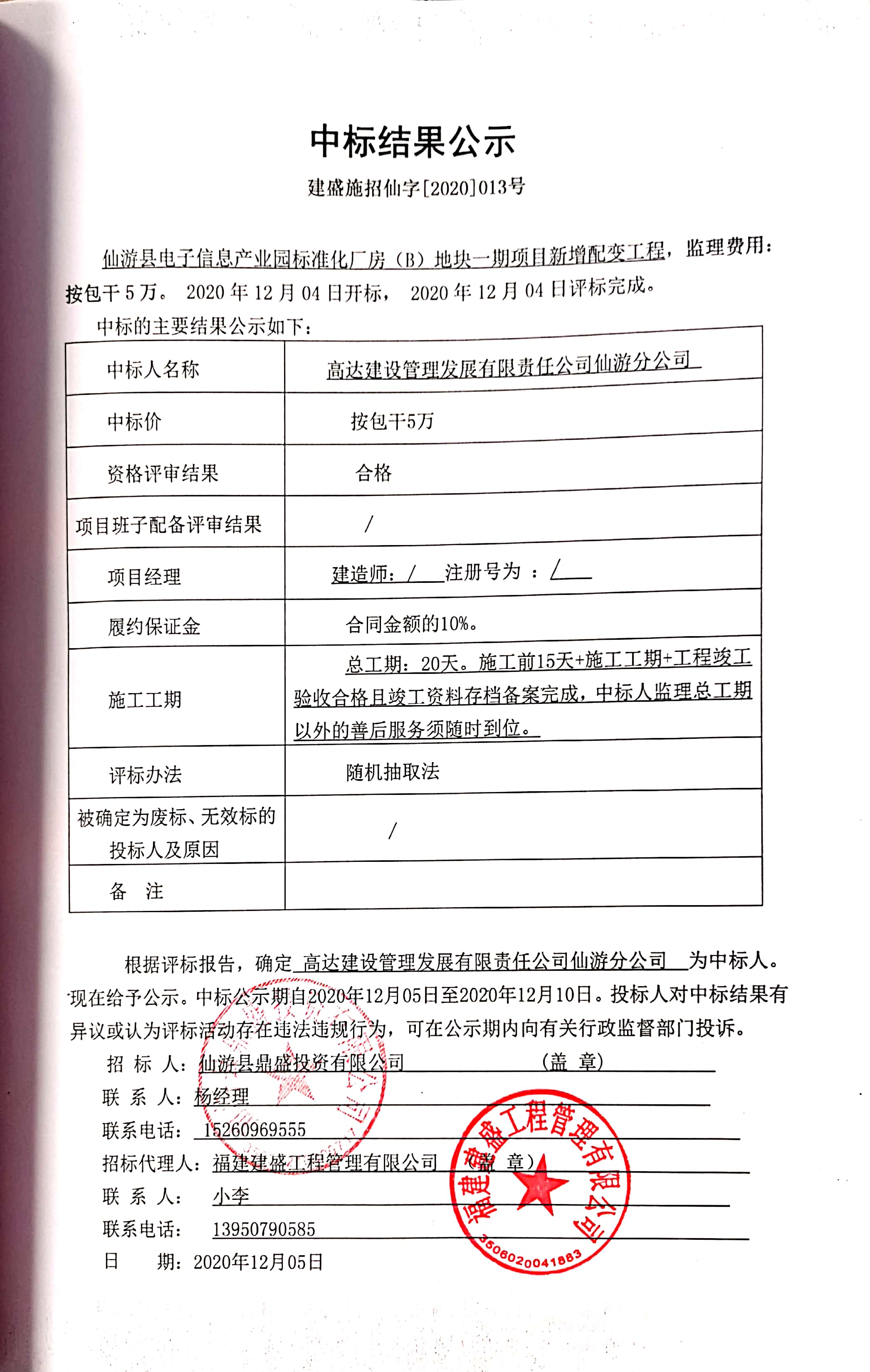 中標(biāo)公告
